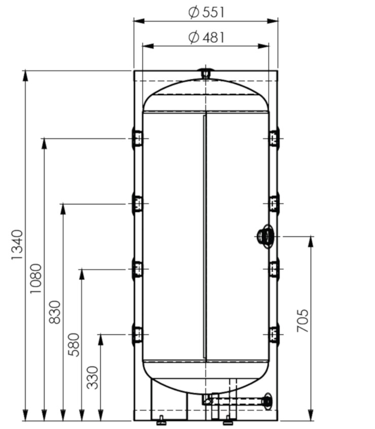 Ballon tampon 200 litres au sol 8 piquages 1"1/4.